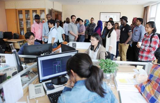 2017年04月19日,東南大學(xué) “一帶一路”可持續(xù)基礎(chǔ)設(shè)施碩士項目的青年留學(xué)生在傅大放教授的帶領(lǐng)下參觀了我公司所在的瑞源集團。